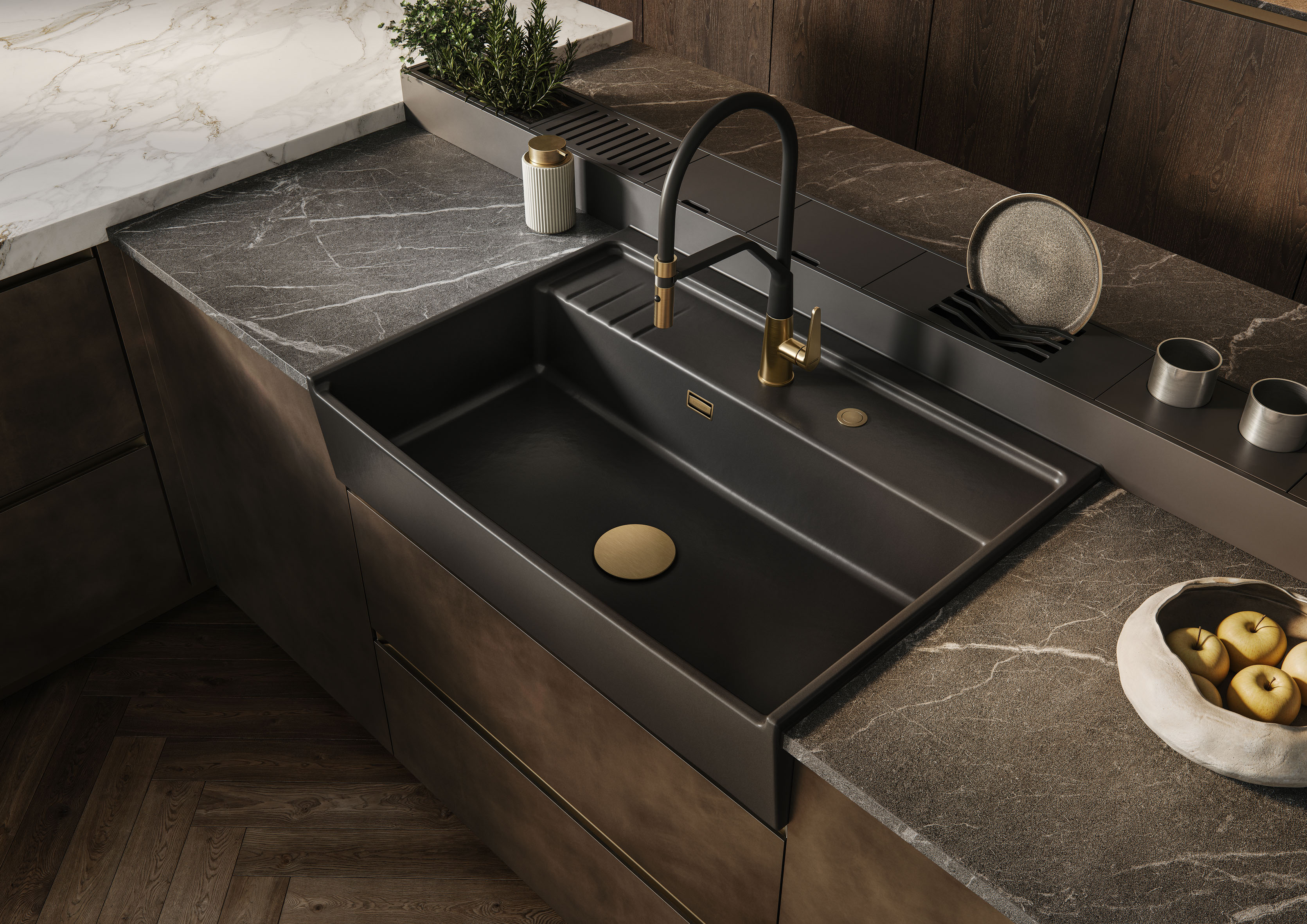 Mit großzügigen Beckenabmessungen von 56 cm x 41,5 cm verlangt die KENTRO 60 keine Kompromisse bei der Vor- und Zubereitung und dem großen Abwasch. Nachhaltig aus den Rohstoffen der Region gefertigt, zuverlässig durch die Eigenschaften des Feinsteinzeugs und gestaltet nach den Bedürfnissen selbstbewusster Küchennutzer: